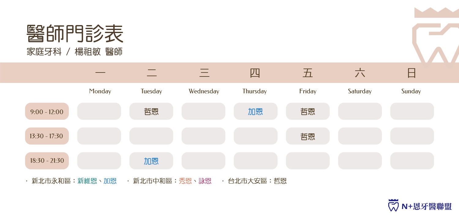 服務區域:哲恩、詠恩臺北醫學大學牙醫學士前萬芳醫院牙科部醫師