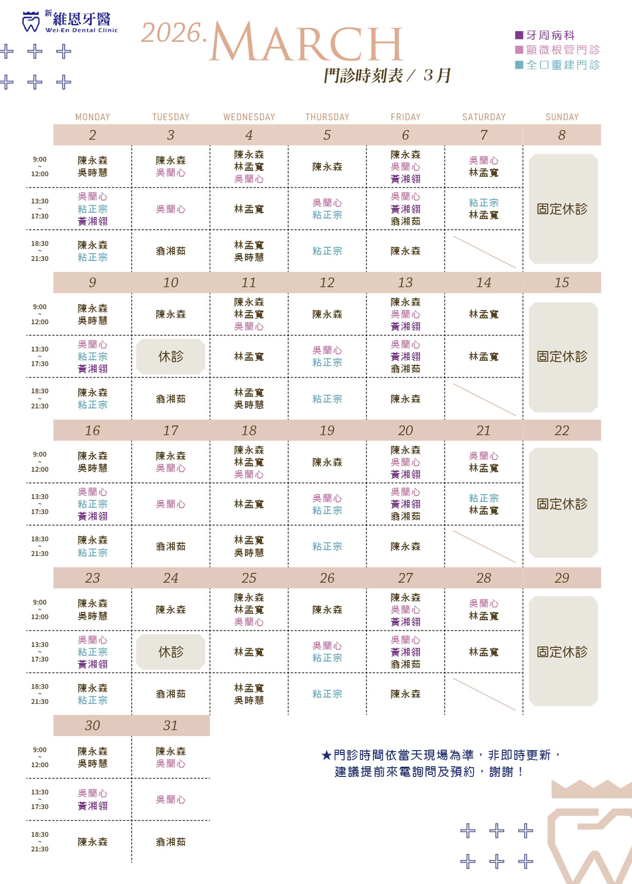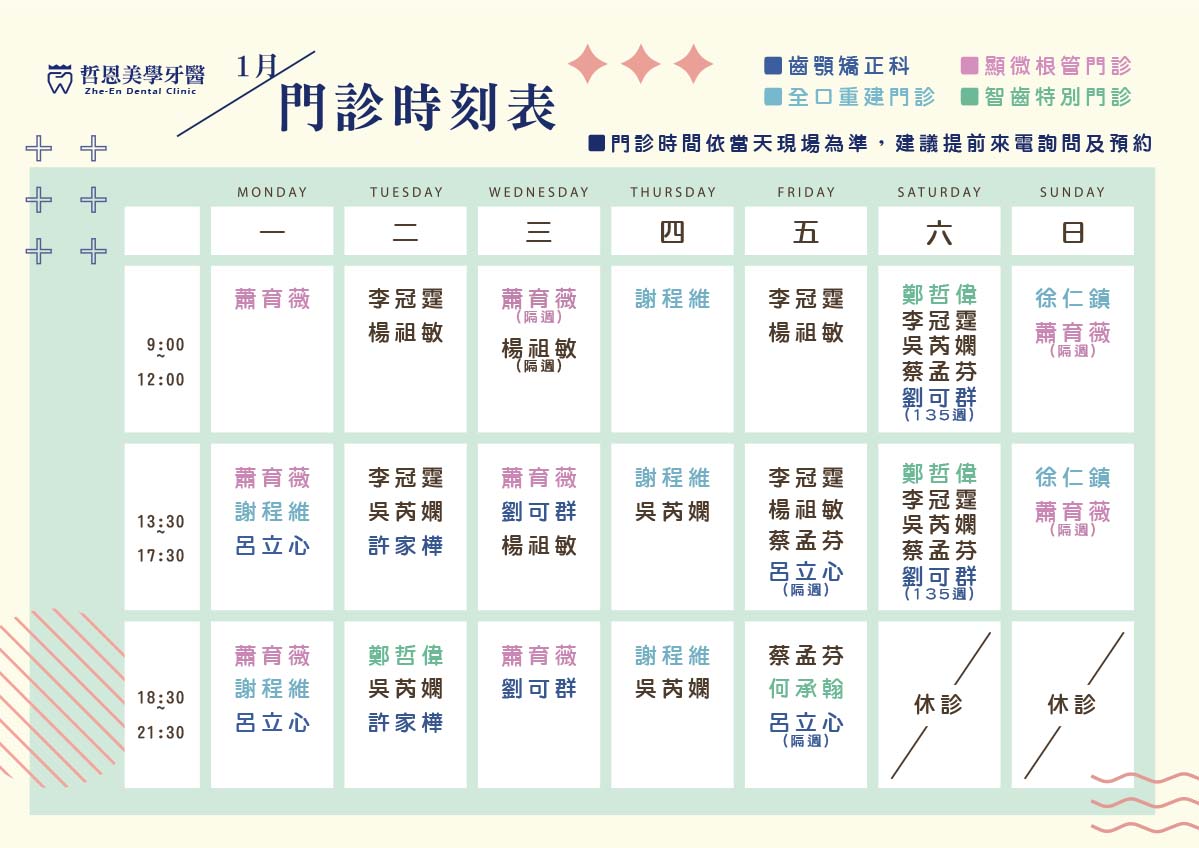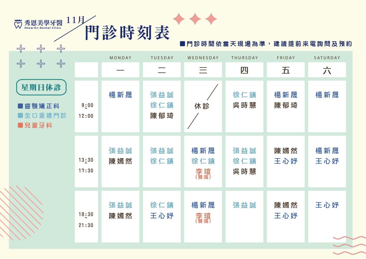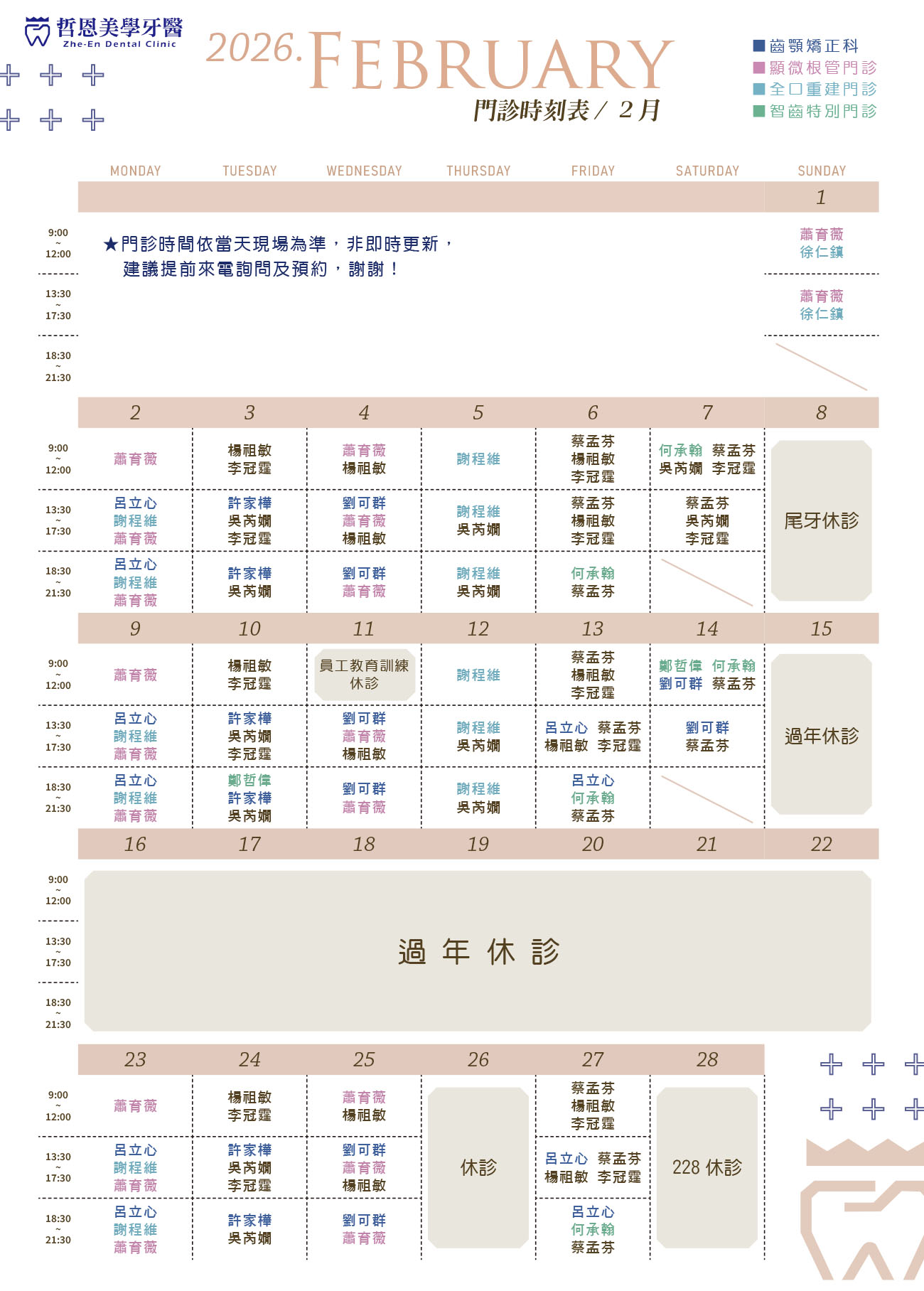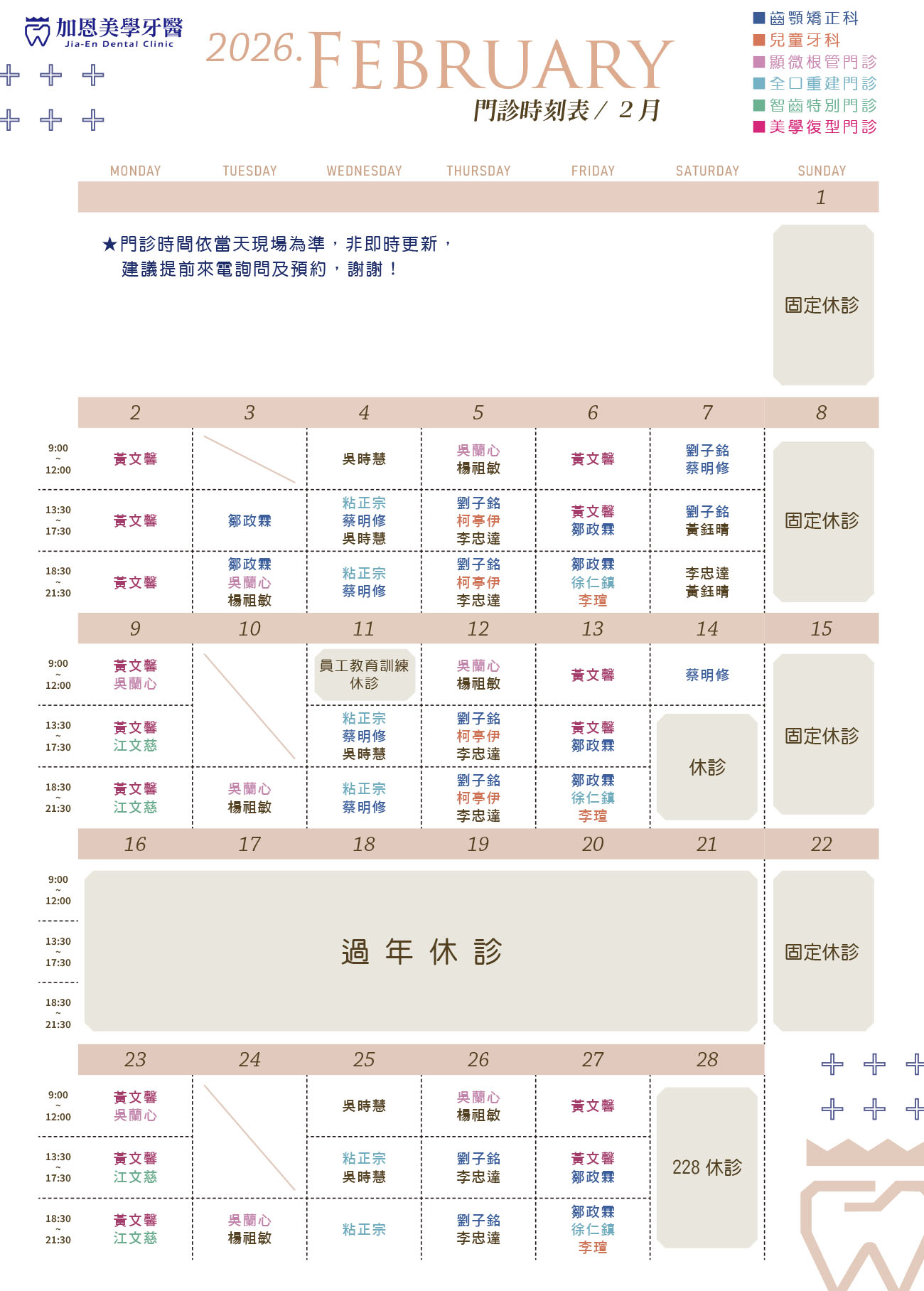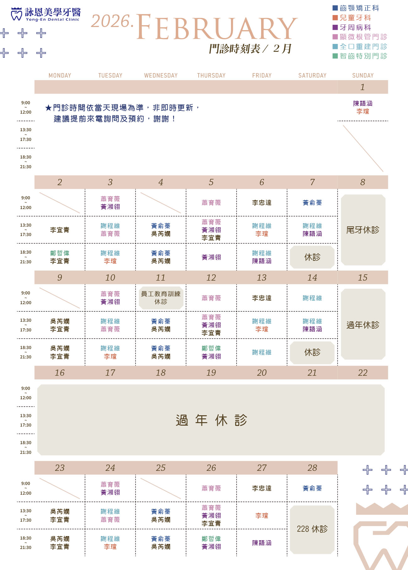 週一至六:9:00 – 12:00 / 13:30 – 17:30 / 18:30 – 21:30